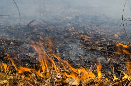 The fire was reported at 1:15 p.m. and reported “knocked down” at 1:54, city fire spokesman Erik Scott said The city fire department also called in a county fire helicopter to join its choppers and ground crews.