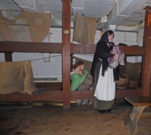After a short drive, we arrived in New Ross, in County Wexford for our visit to the reconstructed Dunbrody Famine Ship or The Irish Emigrant Experience. The cramped living quarters were difficult on the senses as it was damp with an unpleasant dank odor. It was hard to imagine that about 200 people, filling 40 bunk beds, lived under those conditions for six to eight weeks. They were allowed topside only to cook and received three quarts of drinking water daily. Many people died during the crossing due to the oppressive unsanitary conditions. The heart-breaking stories of famine were re-enacted by actors dressed in period costumes. It did give one a sensory taste of what these people endured to get to America.
